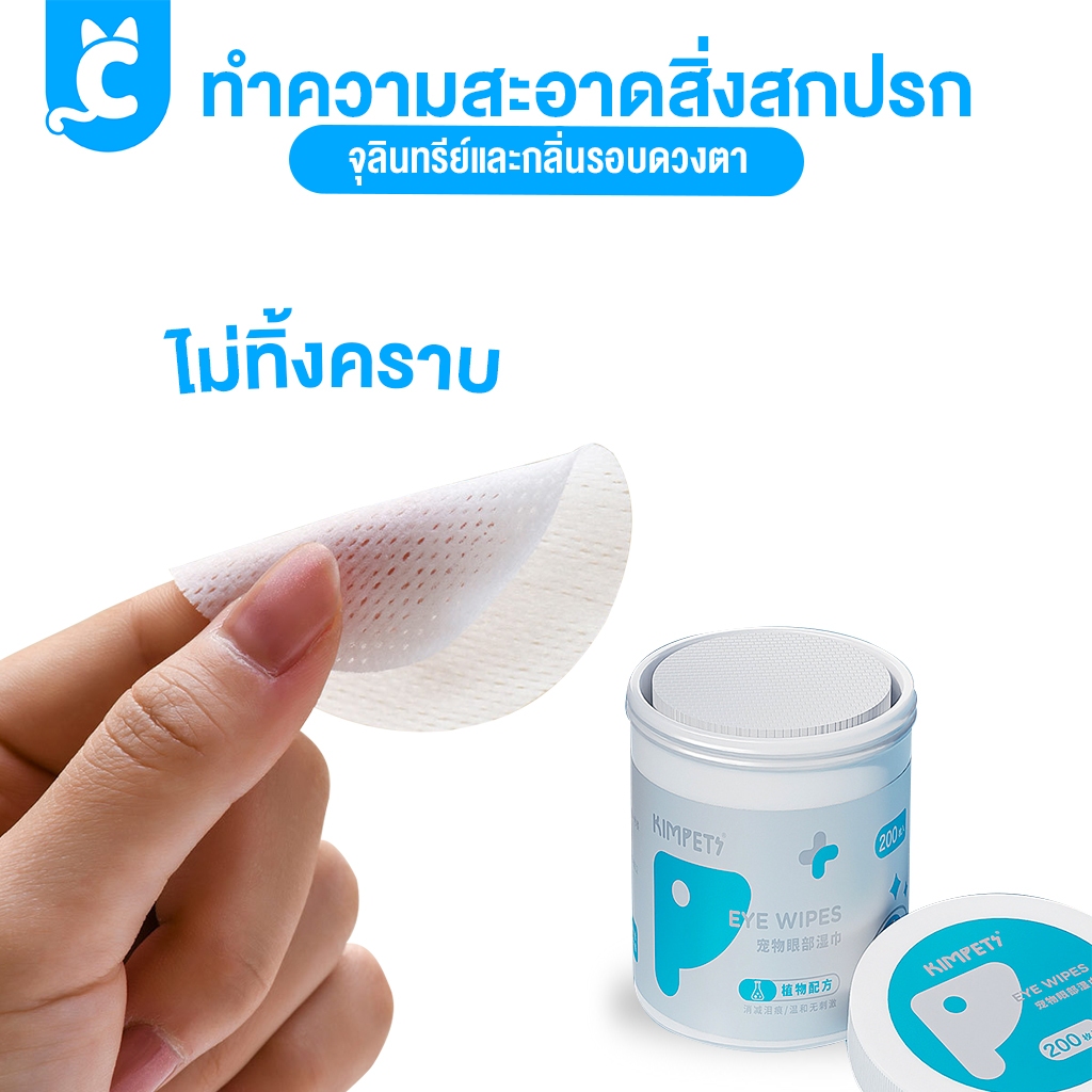[ส่งฟรี🇹🇭] Kimpets แผ่นเช็ดสุนัขและแมว 200 แผ่น แผ่นเช็ดตาแมว ผ้าเช็ดทำความสะอาดเปียก CleverPet