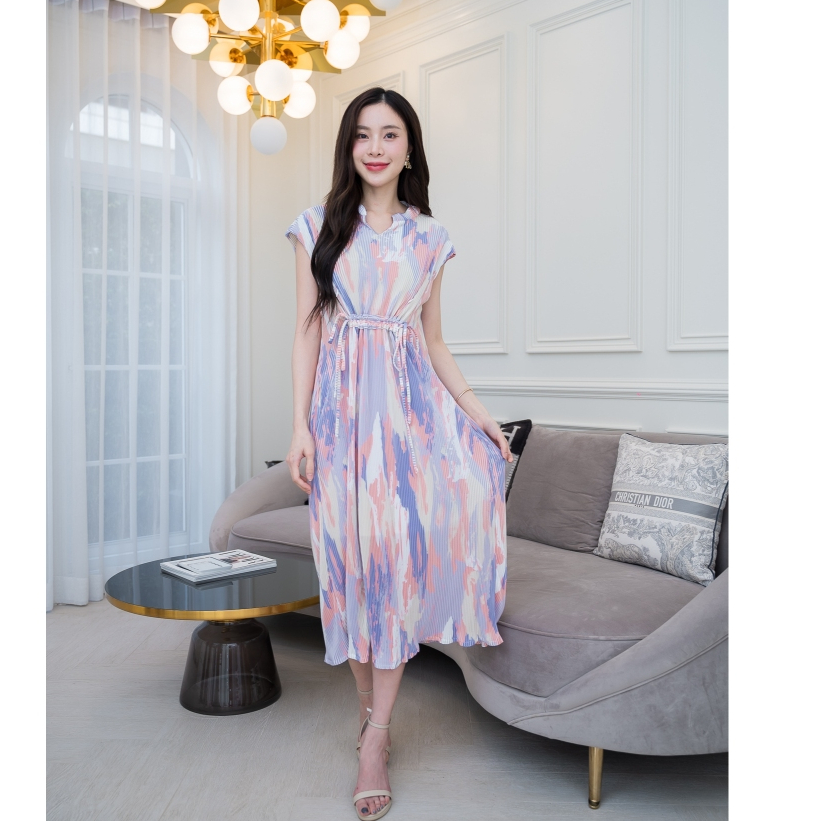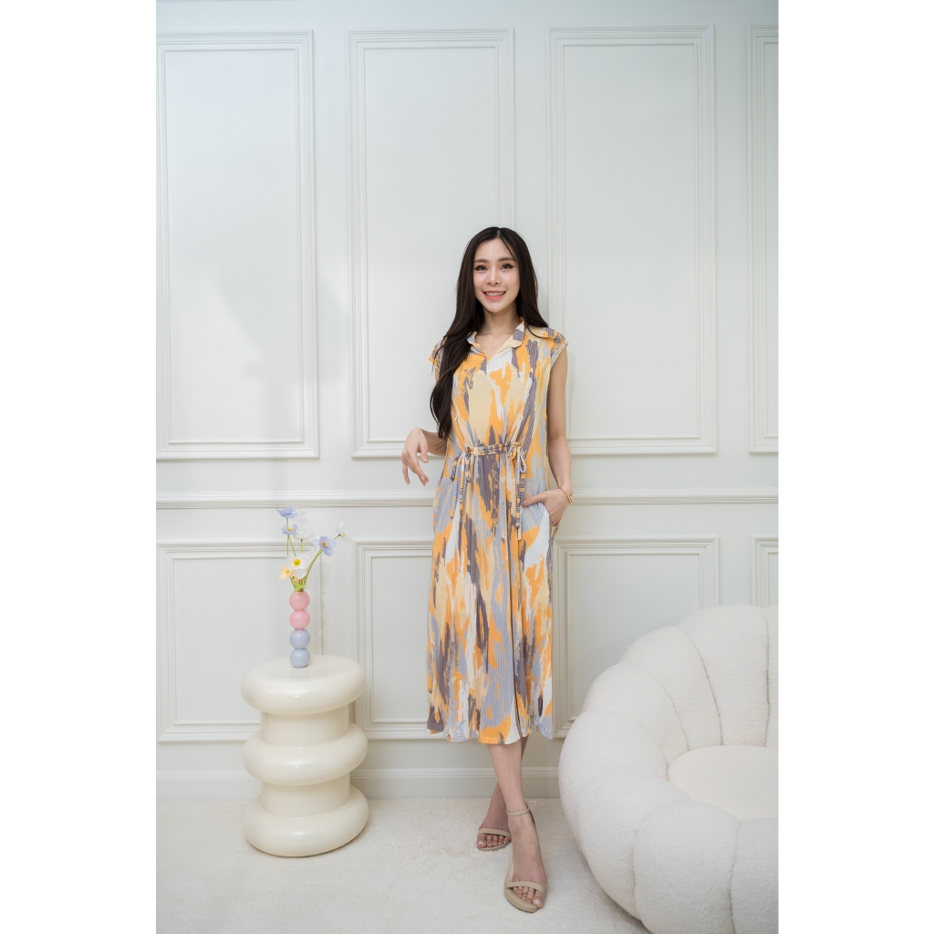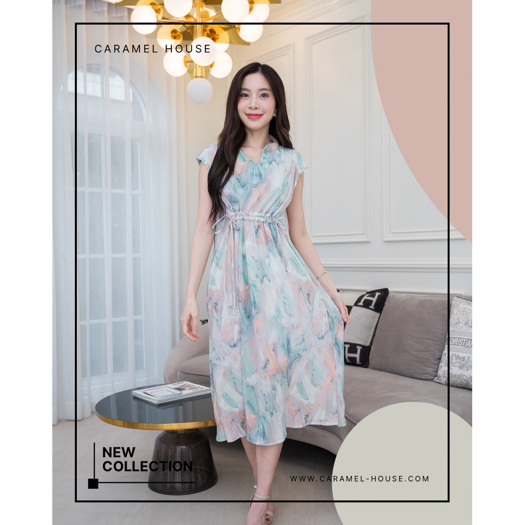 เดรสให้นม Caramel House รุ่น Cute Pleat 👗 คลุมท้องได้ / ให้นมสะดวก ซิปตั้ง ซ้าย/ขวา ผ้าพลีทนุ่มสบาย