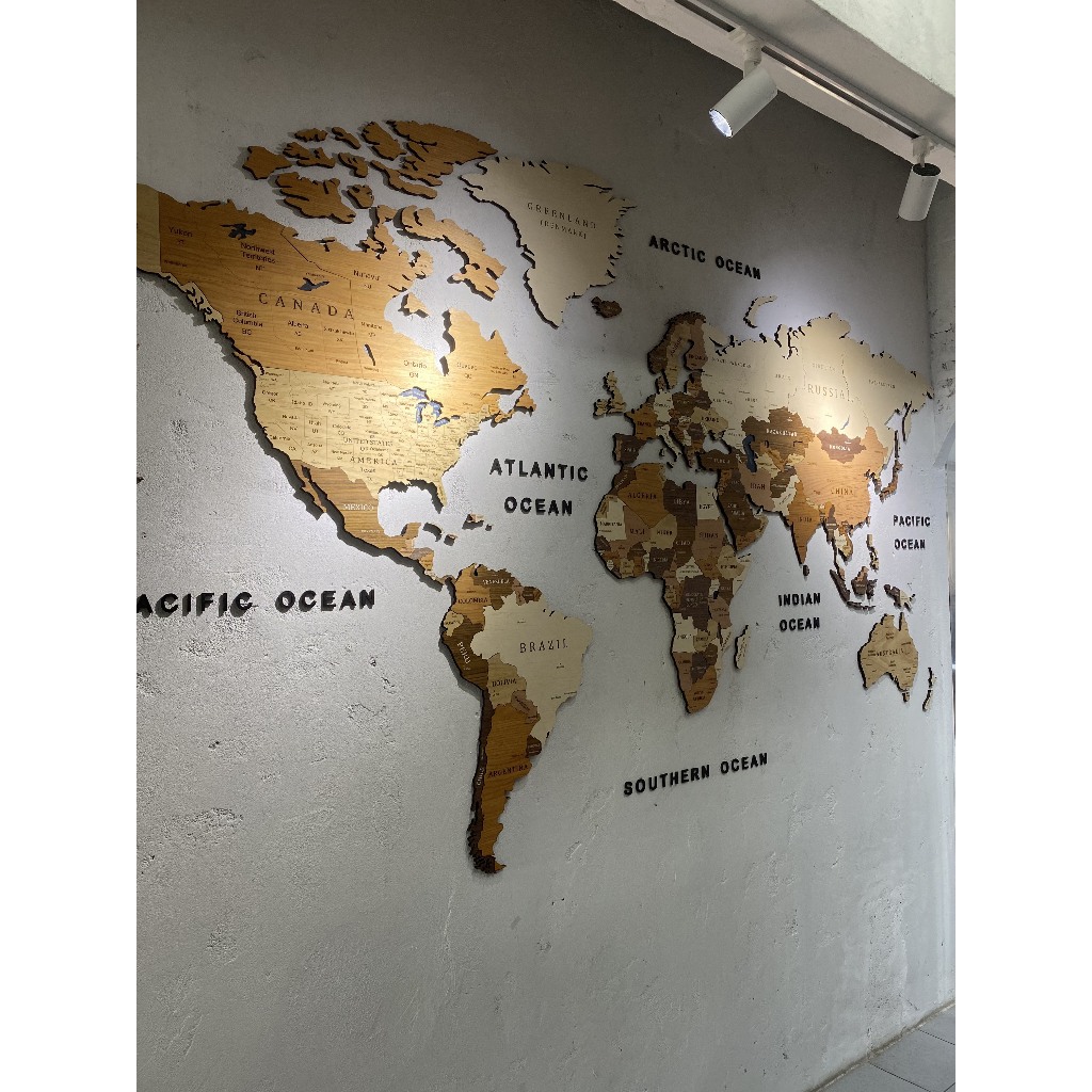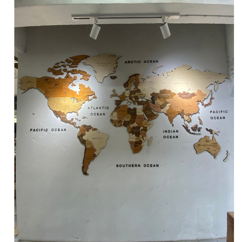 แผนที่โลกไม้ 3D ติดผนัง ไซส์ XXL(300×160x0.9 cm.) สีไม้ธรรมชาติ สินค้าพร้อมส่ง (ออกใบเสร็จได้)