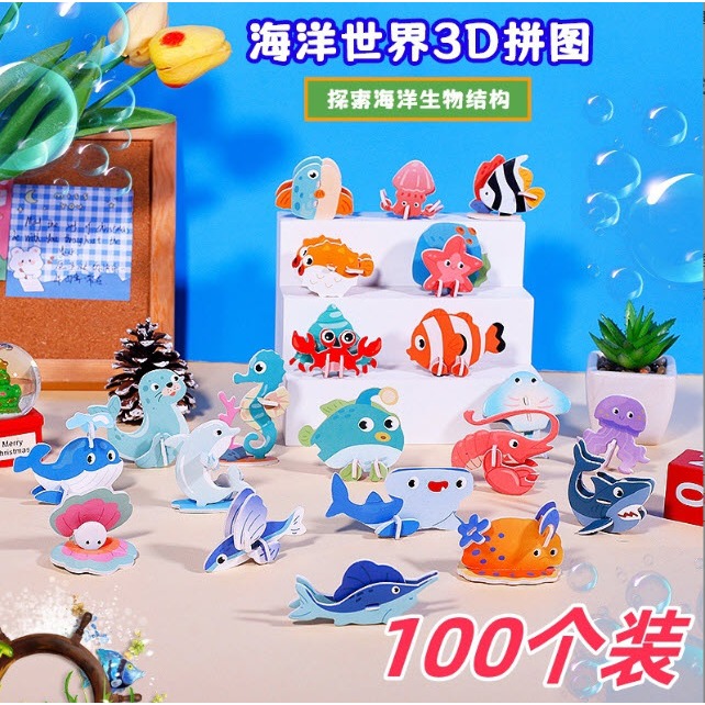 S0041 โมเดลสัตว์ สัตว์น้ำ 3มิติ แฮนด์เมด ของสะสม DIY ตัวต่อโมเดล ทำจากกระดาษ ของแจก