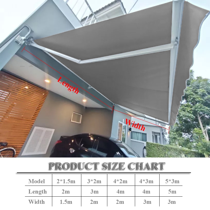 Green Bay กันสาดสำร็จรูป กันสาดพับเก็บได้ มือหมุน เหมาะสำหรับระเบียงกลางแจ้ง ติดตั้งและปรับได้ง่าย