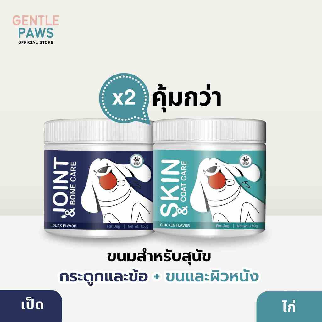 [2แถม1] Gentle Paws ขนมสุนัขดูแลผิวหนังและขน รสไก่ & ขนมสุนัขดูแลกระดูกและข้อต่อ รสเป็ด