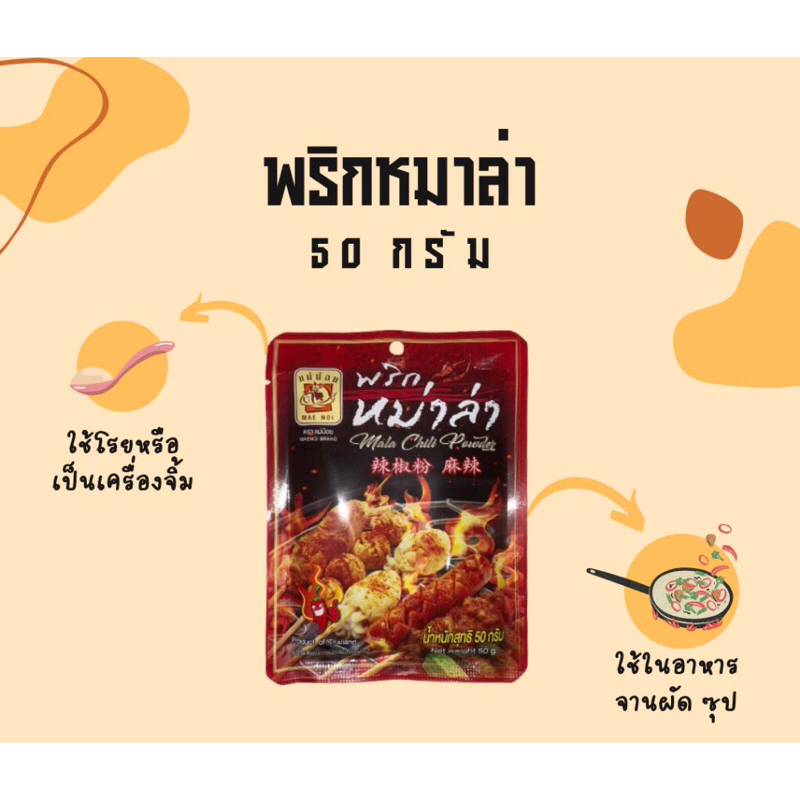 [ยกแพ็ค] พริกหม่าล่า แม่น้อย Mala Pepper ผงหม่าล่า ขนาด 50 กรัม 1 แพ็ค 10 ซอง ใช้ปรุงรสอาหาร ปิ้งย่าง และอื่นๆ
