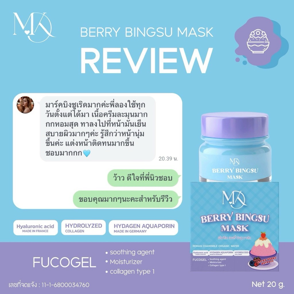 ส่งทันที : ลด 10% ในไลฟ์ ♡ มาส์กบิงซูเบอร์รี่ สลิปปิ้งมาส์ก BERRY BINGSU MASK พี่กุ้งกดสิว มาดามกิ๊กกี้ MDK 20 กรัม