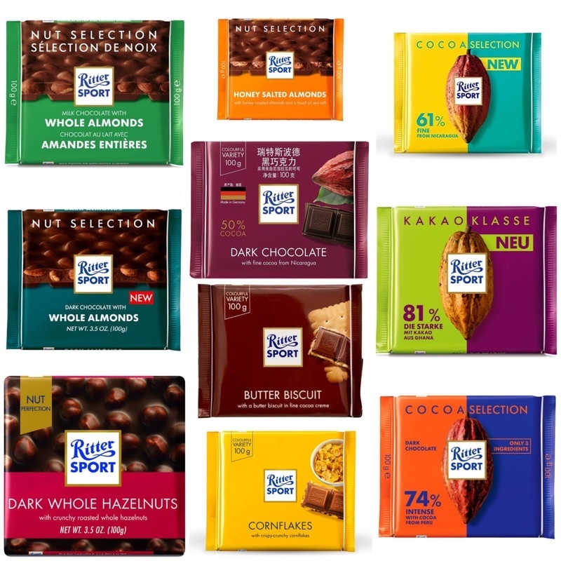 Ritter Sport Chocolate Bar 100 g ช็อคโกแลตบาร์ จากเยอรมัน มีมากกว่า 20 รสชาติ