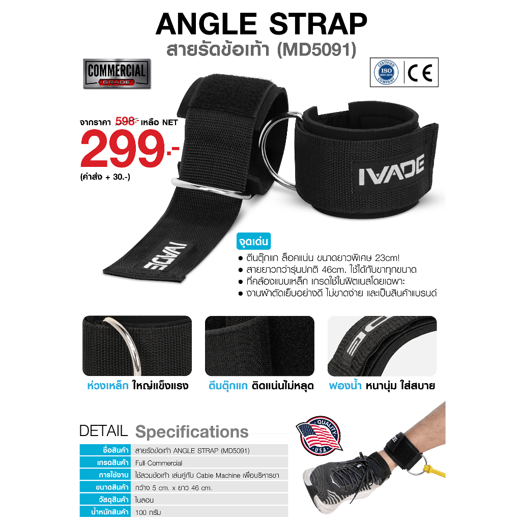 สายรัดเท้า IVADE Angle Strap เกรด Full Commercial 1 คู่ (MD5091)