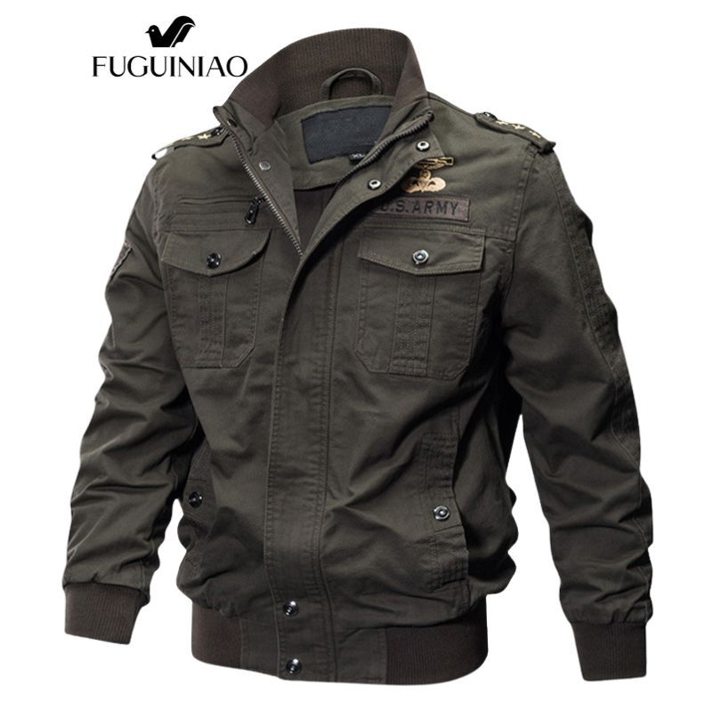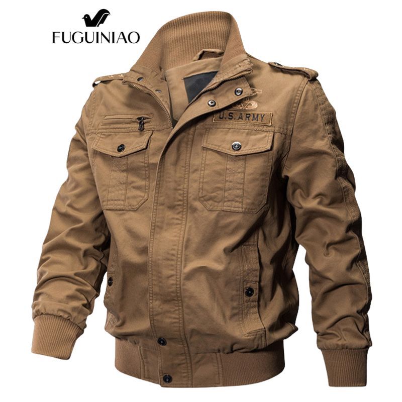 Fuguiniao เสื้อแจ็กเก็ตคาร์โก้ ผ้าฝ้าย ปักลายเครื่องบิน พลัสไซซ์ แฟชั่นฤดูใบไม้ผลิ ฤดูใบไม้ร่วง สําหรับผู้ชาย ไซซ์ 6XL