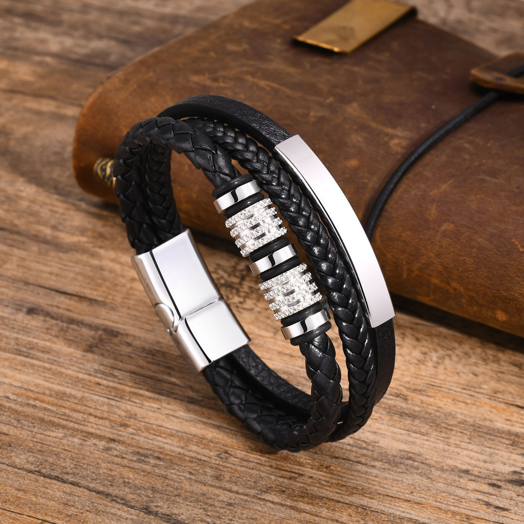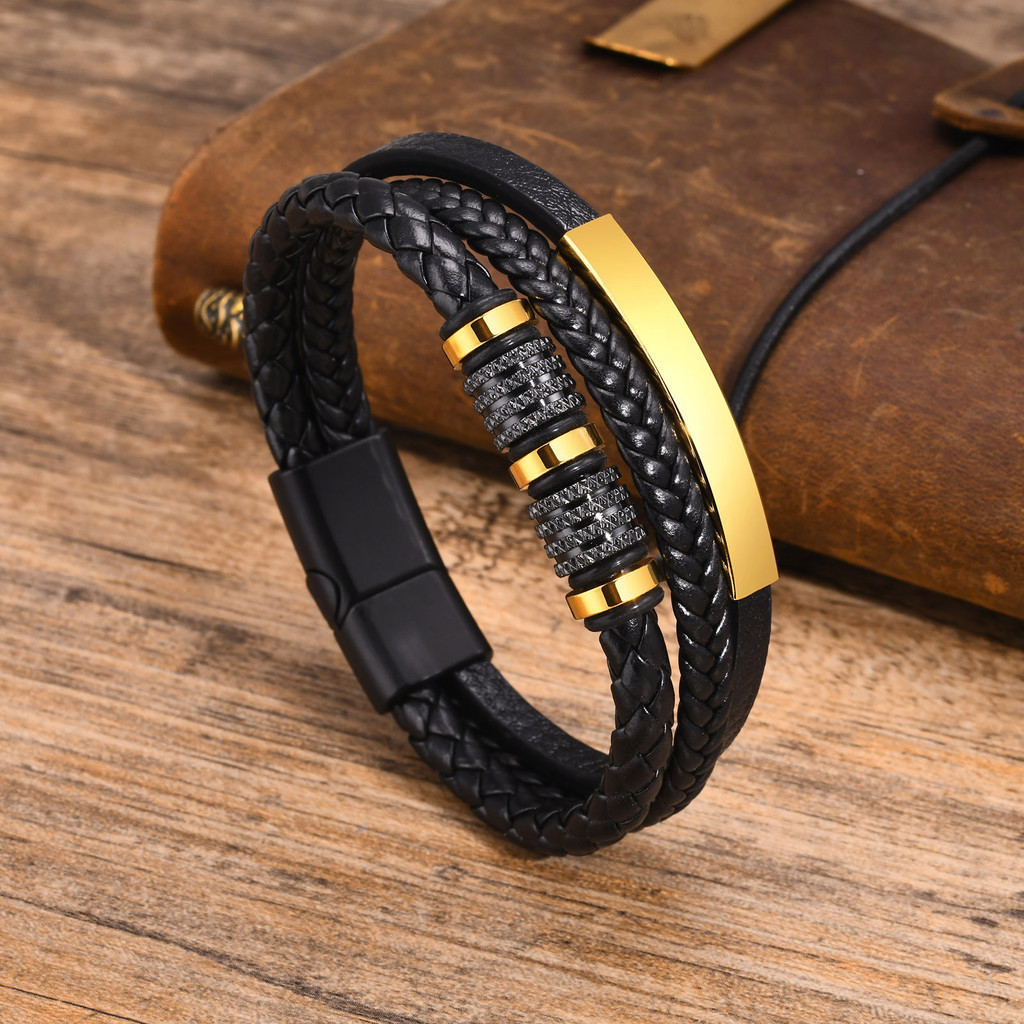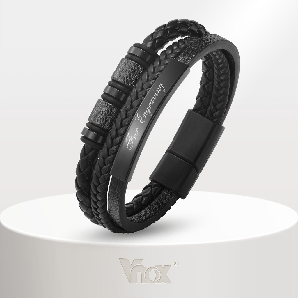 Vnox Custom PU หนังสร้อยข้อมือสําหรับชาย, 18K Gold สแตนเลสส่วนบุคคลกําไลข้อมือของขวัญเครื่องประดับแฟนอุปกรณ์สําเร็จการศึ
