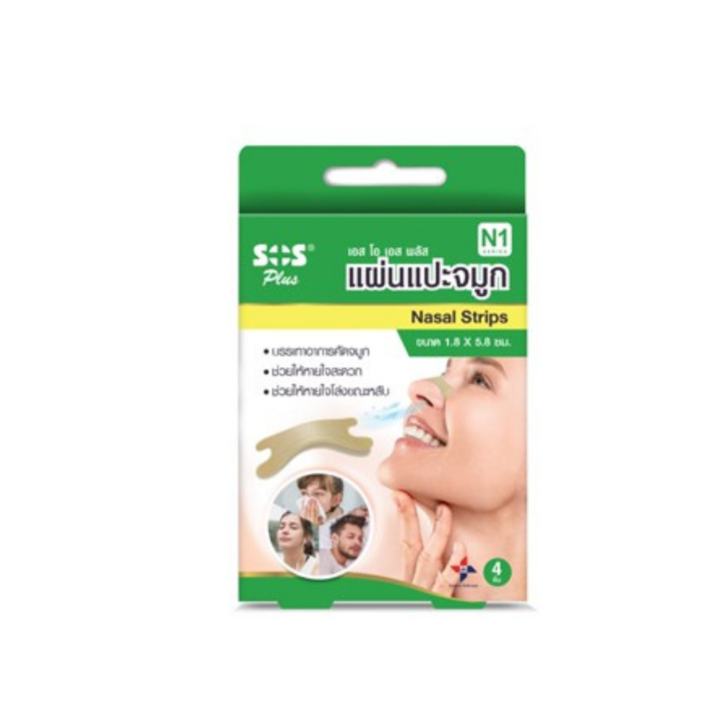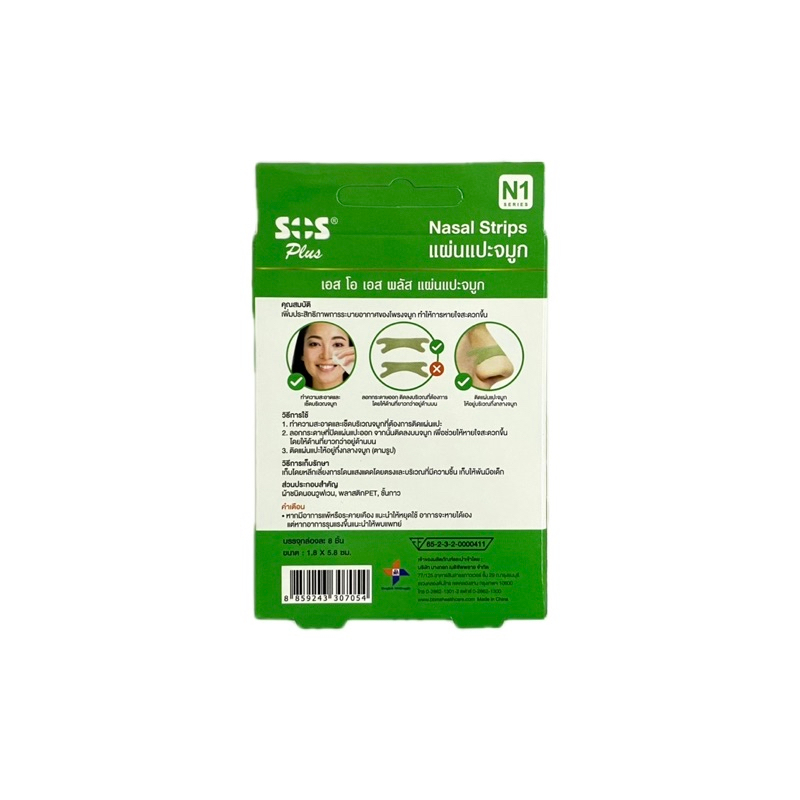 SOS Plus Nasal Strips เอสโอเอส พลัส แผ่นแปะจมูก [8 ชิ้น] แปะจมูก หายใจสะดวก #12414
