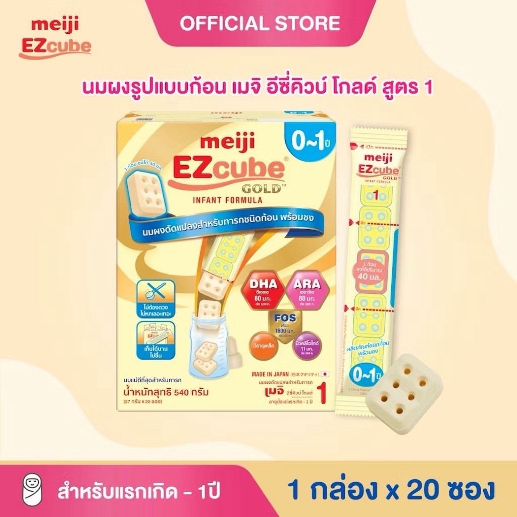 Meji EZCube นมสำหรับทารก 0-1 ปี แบบก้อน สะดวก พกพาง่าย ไม่เลอะเทอะ