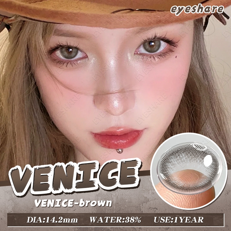 {COD}-เวนิส -100°-600°คอนแทคเลนส์สายตาสั้นสีเทา/น้ำตาล/น้ำเงิน คอนแทคเลนส์ขนาดเล็ก 14.2 มม. 1 คู่เลนส์อ่อนรายปี