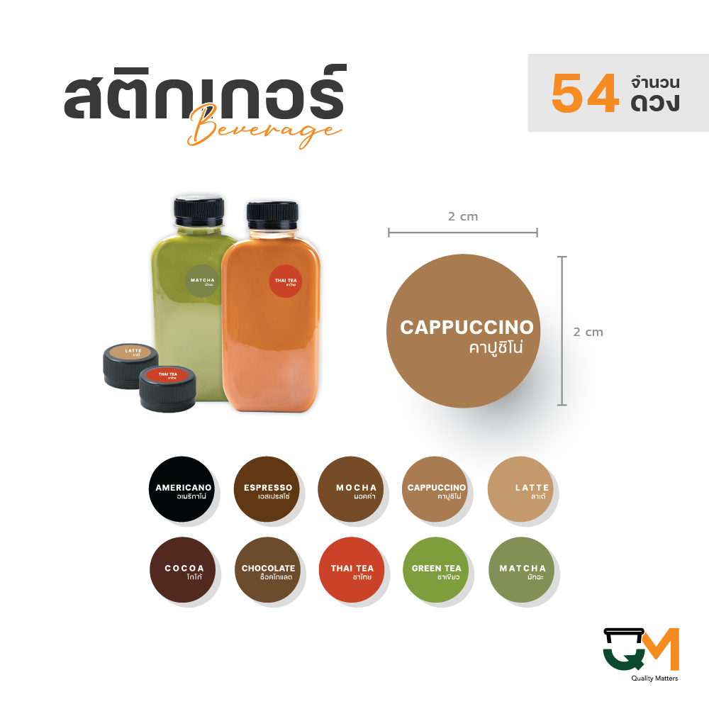 สติกเกอร์เครื่องดื่ม V.5 ร้านกาแฟ คาเฟ่ อเมริกาโน่ ลาเต้ ชาไทย