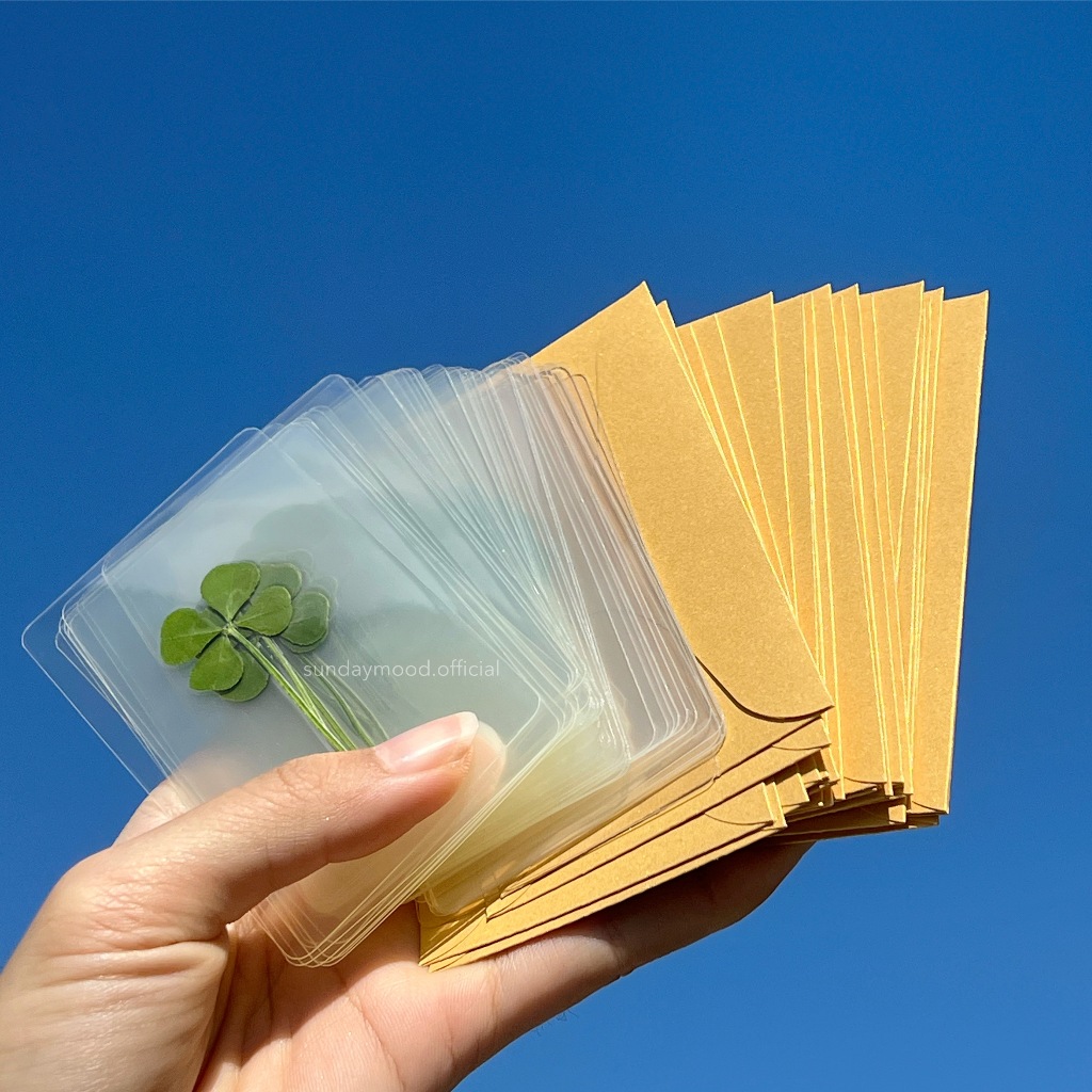 [พร้อมส่งของแท้] 🍀ใบโคลเวอร์ 4 แฉก พร้อมซองทอง แบบร้านคุณลุง จากเกาหลี ใบโคลเวอร์ เคลือบการ์ด clover leaf