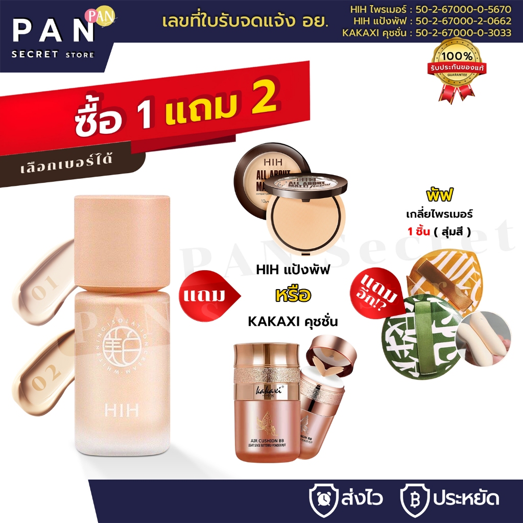 ( 1 แถม 2 ) HIH ไพรเมอร์ *แถม* คุชชั่นผีเสื้อ+พัฟฟองน้ำ [มีเลขจดแจ้ง] คุมมัน กันเหงื่อ ปกปิดได้ดี