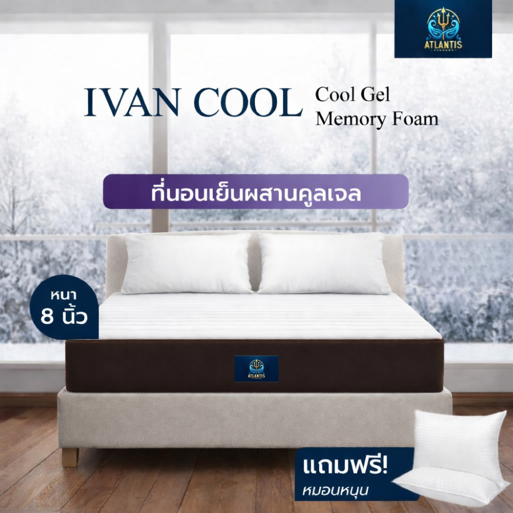 Atlantis kingdom [แพ็คใส่กล่อง] รุ่น Ivan ที่นอนเย็นผสานคูลเจล เพิ่มความเย็น ลดความร้อน ช่วยดูดซับกลิ่นอับ มีความนุ่ม
