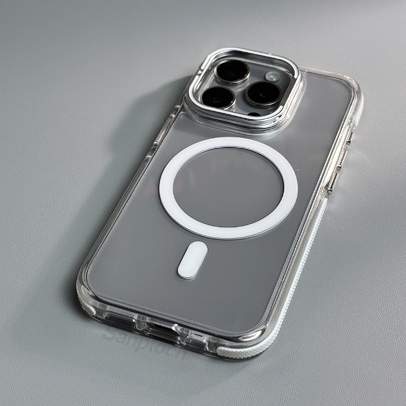 Sanptoch สําหรับแม่เหล็กที่มองไม่เห็นขาตั้งเคสโทรศัพท์สําหรับ iPhone 17 / 16 / 15 / 14 / 13 / 12 Pro Max Clear กันกระแทกฝาครอบกันชนเคสใสป้องกันพร้อมที่ใส่เลนส์กล้อง