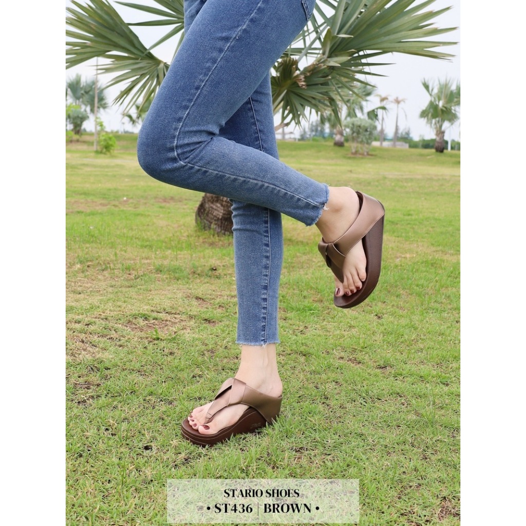 Stario Shoes ~ST436 สูง2.5นิ้ว เท้าอวบ+1❗️รองเท้าสุขภาพผู้หญิงพรีเมียม หน้าคีบ รุ่นใหม่ นุ่มหรู