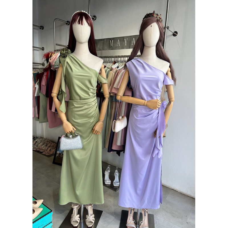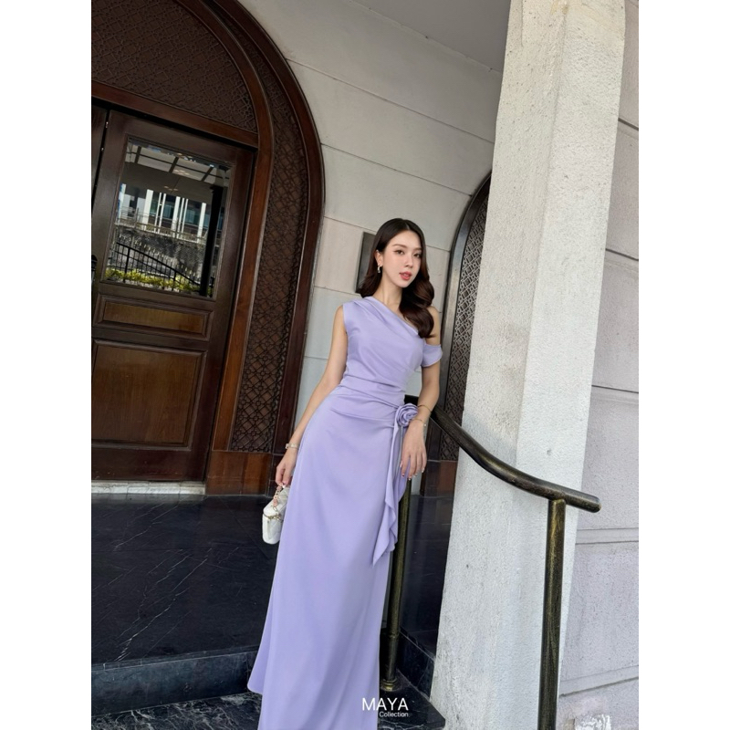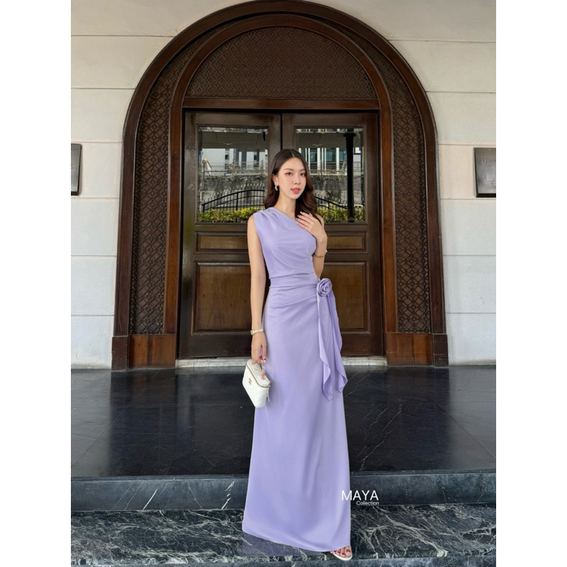 ชุดออกงาน เดรสไปงาน G121 มีสีฟ้า ครีม ม่วง เขียว ชมพู ฟ้าคราม แถมเข็มกลัดดอกไม้1ดอก