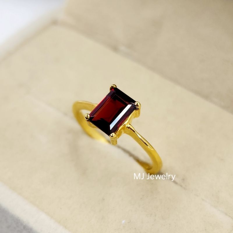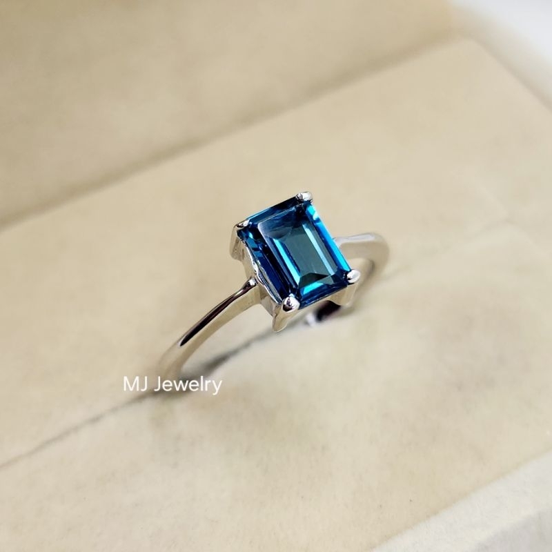 แหวนพลอยเหลี่ยม ขนาด 7×5 มิล เม็ดเดี่ยว เงินแท้ 925