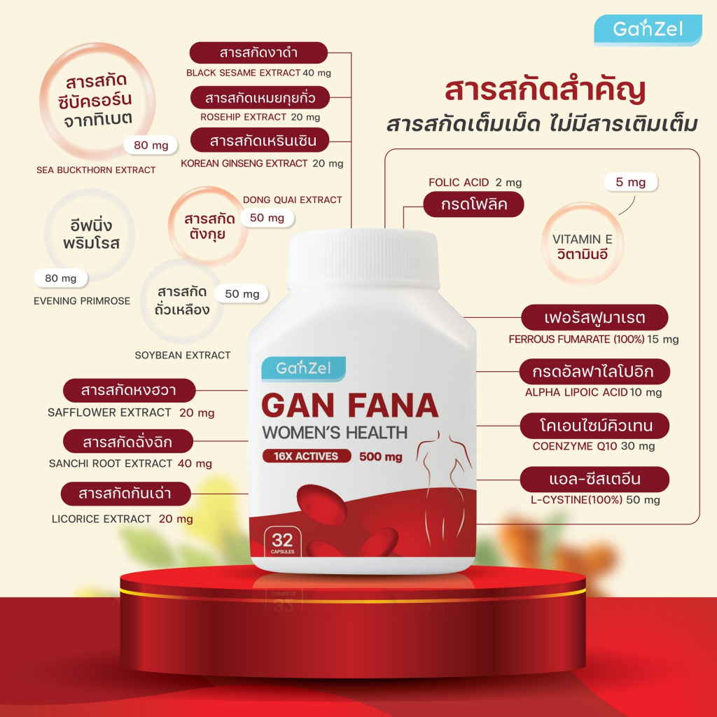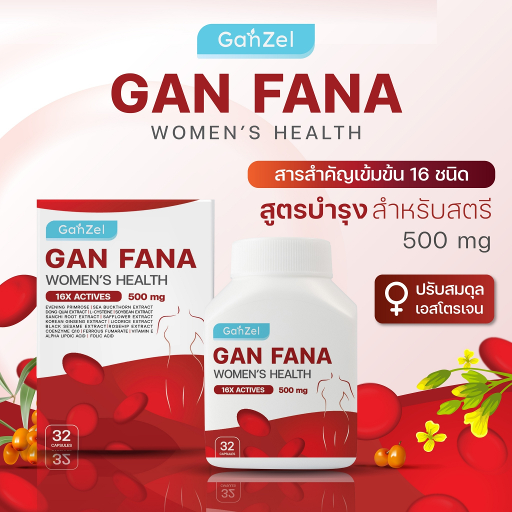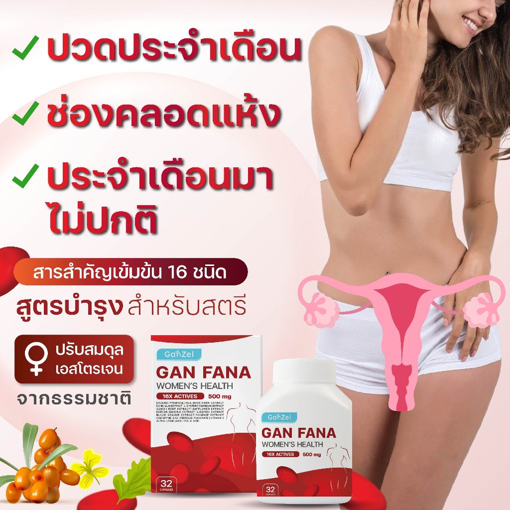 อาหารเสริมแกนฟาน่า สูตรบำรุงสำหรับสตรี (ลดอาการปวดประจำเดือน,บำรุงโลหิต) GANFANA