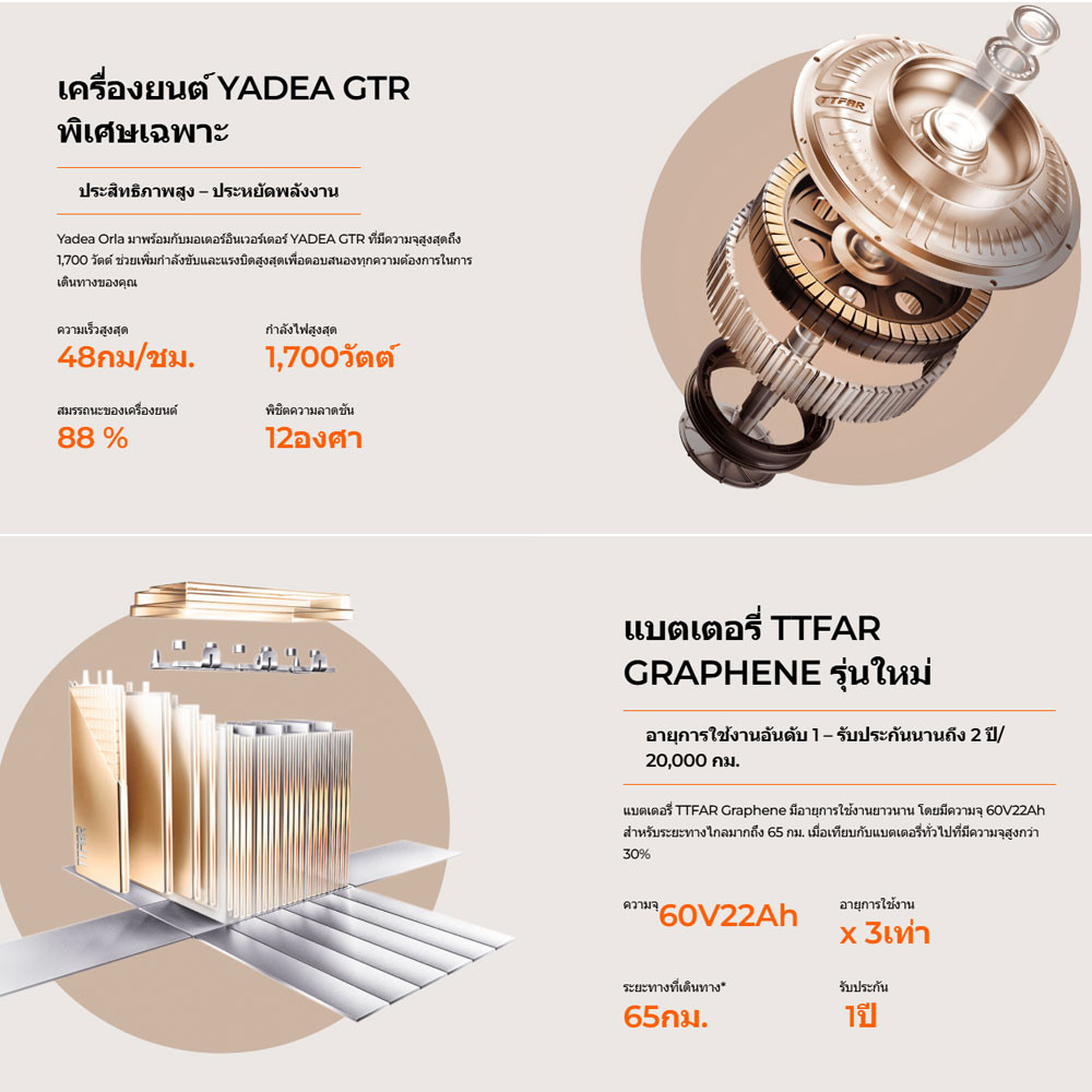YADEA มอเตอร์ไซด์ไฟฟ้า ขับได้ไกลถึง75km ความเร็ว48กม. /ชม.แบตเตอรี่ของกราฟีน 60V22AH จักรยานไฟฟ้าYADEA มอเตอร์ไซค์ไฟฟ้า
