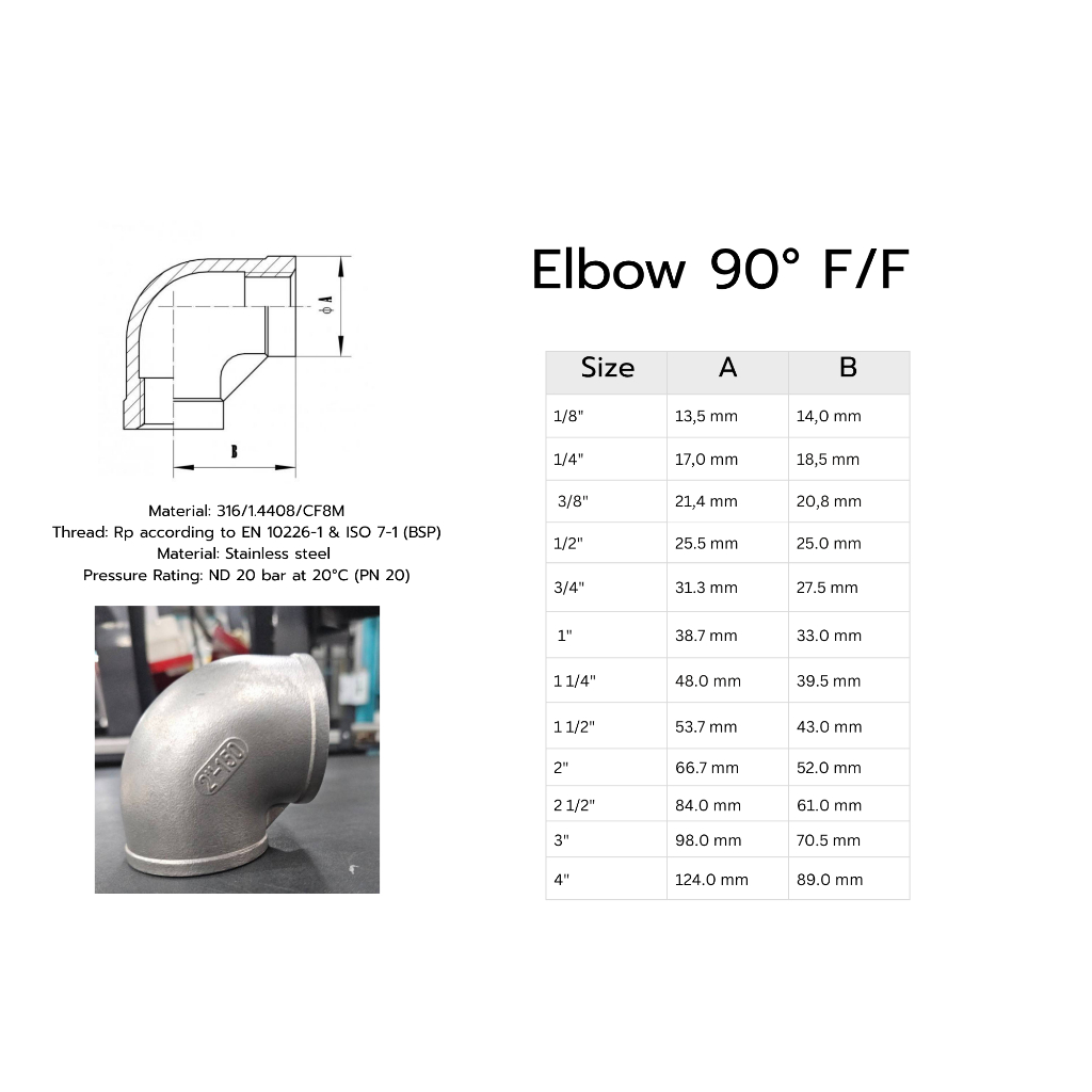 ข้องอ 90° เกลียว BSPT สแตนเลส 316 1-1/4"-2"เกรดดีที่สุด มาตรฐานอุตสาหกรรม พร้อมส่งในไทย