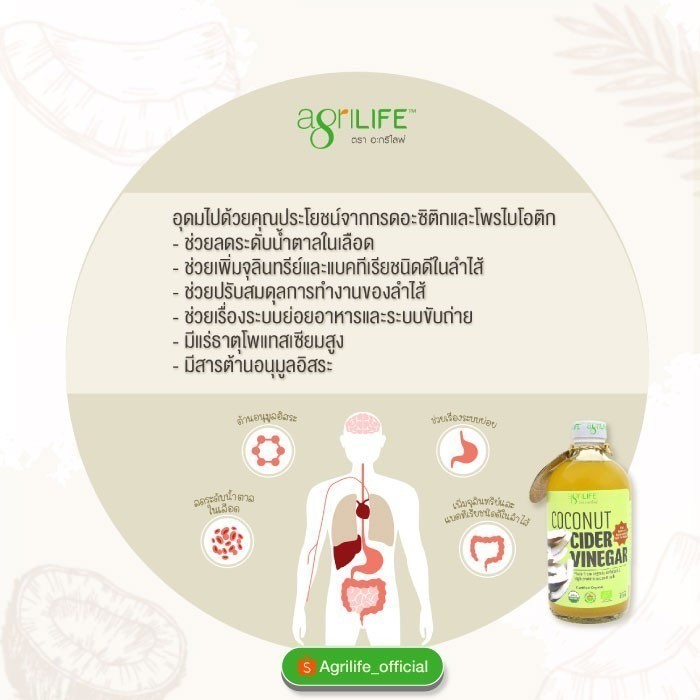 Agrilife อะกรีไลฟ์ น้ำส้มสายชูหมักจากกะทิไขมันต่ำ Coconut Cider Vinegar | USDA
