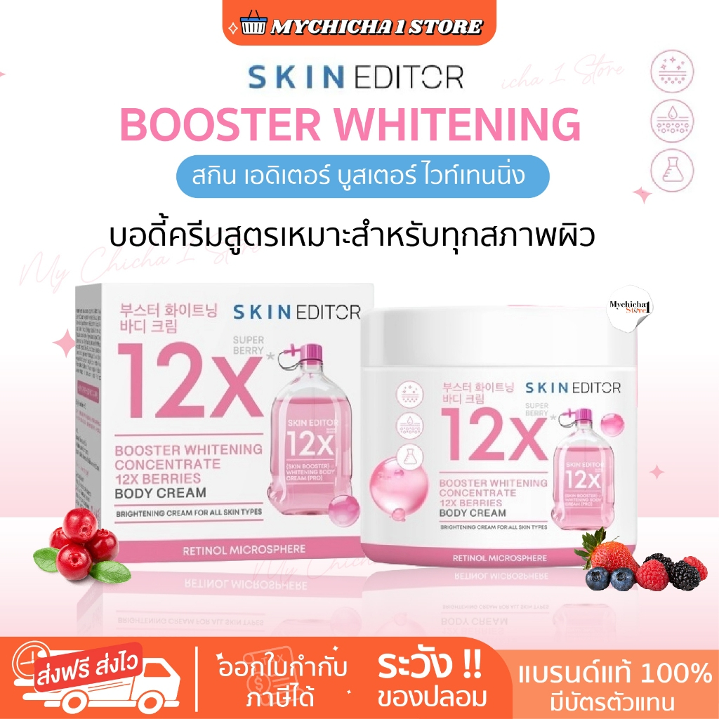 [ M/แท้] Skin Editor สกิน เอดิเตอร์ Booster whitening บูสเตอร์ ไวท์เทนนิ่ง12X บอดี้ครีม อีผ่อง
