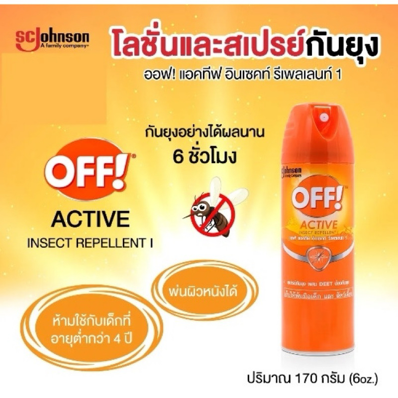 🔥แท้💯%ค่าส่งถูก🚘 OFF Active Spray ออฟ แอคทีฟ สเปรย์กันยุง ป้องกันยุง อย่างได้ผลนาน 6 ชั่วโมง ขนาด 170 ml. ออฟ กันยุง