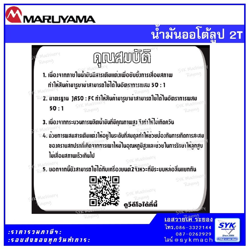 *ถูก แท้ ส่งไว* จารบีมารูยาม่า น้ำมันมารูยาม่า MARUYAMA 2T 50:1 /CE326