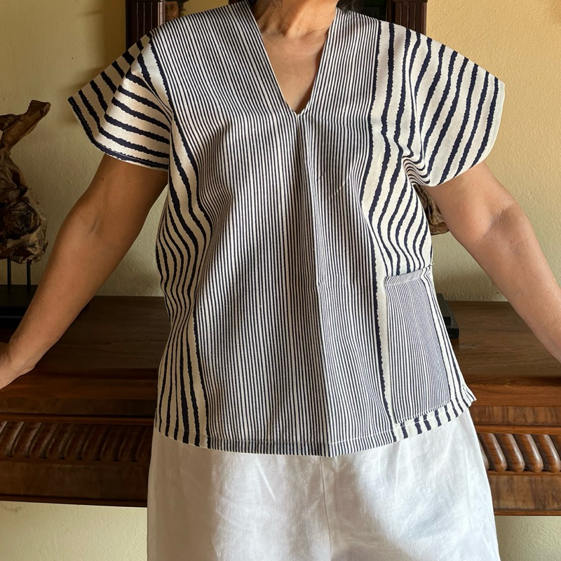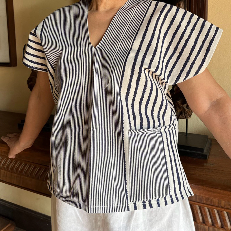 (กรม01) เสื้อผ้าฝ้ายพื้นเมือง สงกรานต์ฝ้าฝ้ายพิมพ์ลาย คอวี