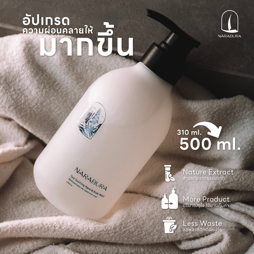 NARABURA Sea Soothing Hand & Body Wash ขนาด 500 มล. บำรุงผิวชุ่มชื้น ไม่แห้งตึง