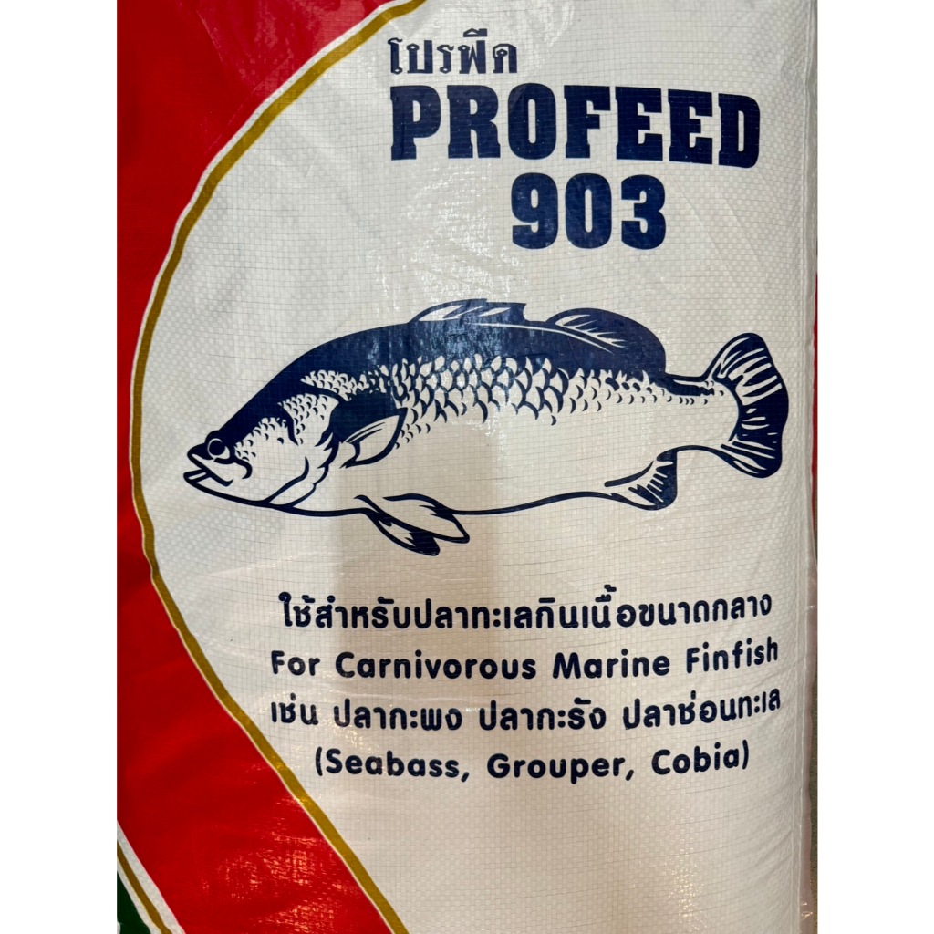 ProFeed อาหารปลากระพง ปลากินเนื้อ โปรฟีด โปรตีน 42% อาหารปลาทะเล > 903 < ( ยกกระสอบ 20 กก. )