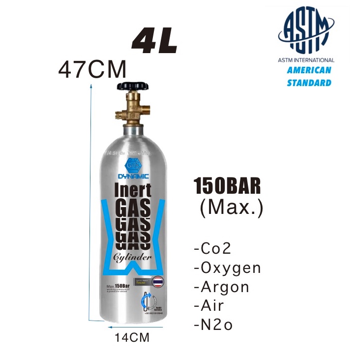 Gas Dynamic Food Grade Co2 Cylinder 1L 2L 4L with CGA 320 Valveกระบอกแก๊สไดนามิกฟู้ดเกรด Co2 1 ลิตร 2 ลิตร 4 ลิตร