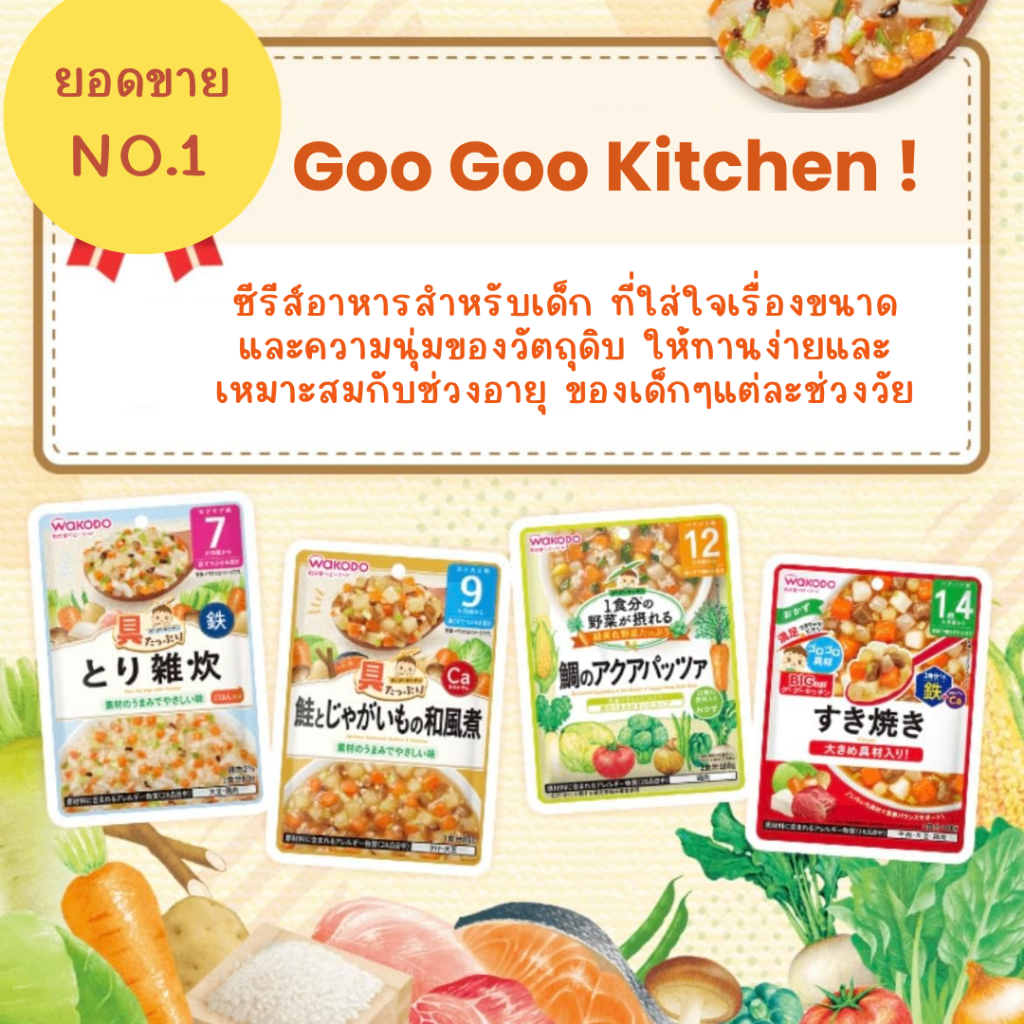 [9M+] Wakodo อาหารเด็กสูตรญี่ปุ่นแบบซอง เมนูรวมผัก 10 ชนิด พร้อมทาน 100 กรัม สำหรับเด็ก 9 เดือน+