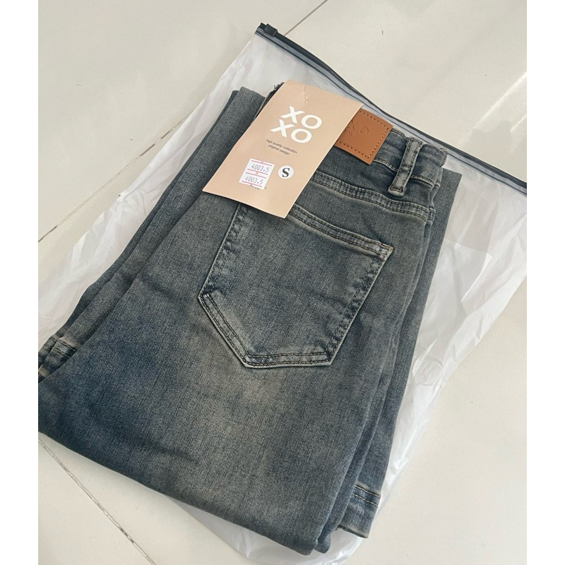 SALEรหัส4003-5 กางเกงยีนส์ขาม้า สีสนิมฟอกหม่นๆ ผ้านิ่มยืดเยอะ ป้ายxoxo