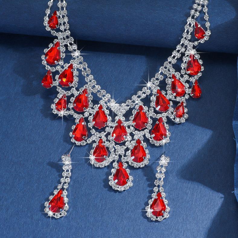 ชุดเครื่องประดับสุภาพสตรีคริสตัลสร้อยคอต่างหูชุดเครื่องประดับพรรคเครื่องประดับงานแต่งงาน