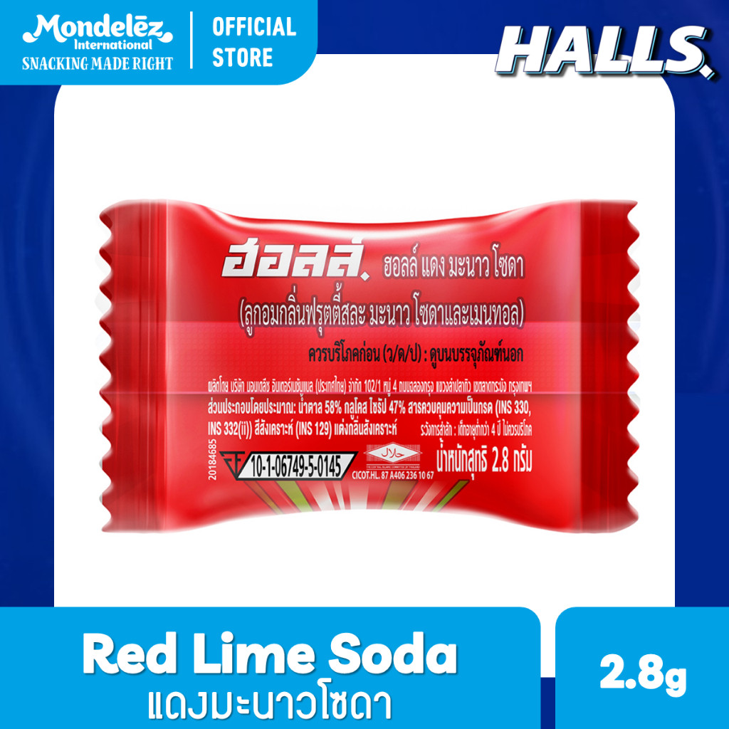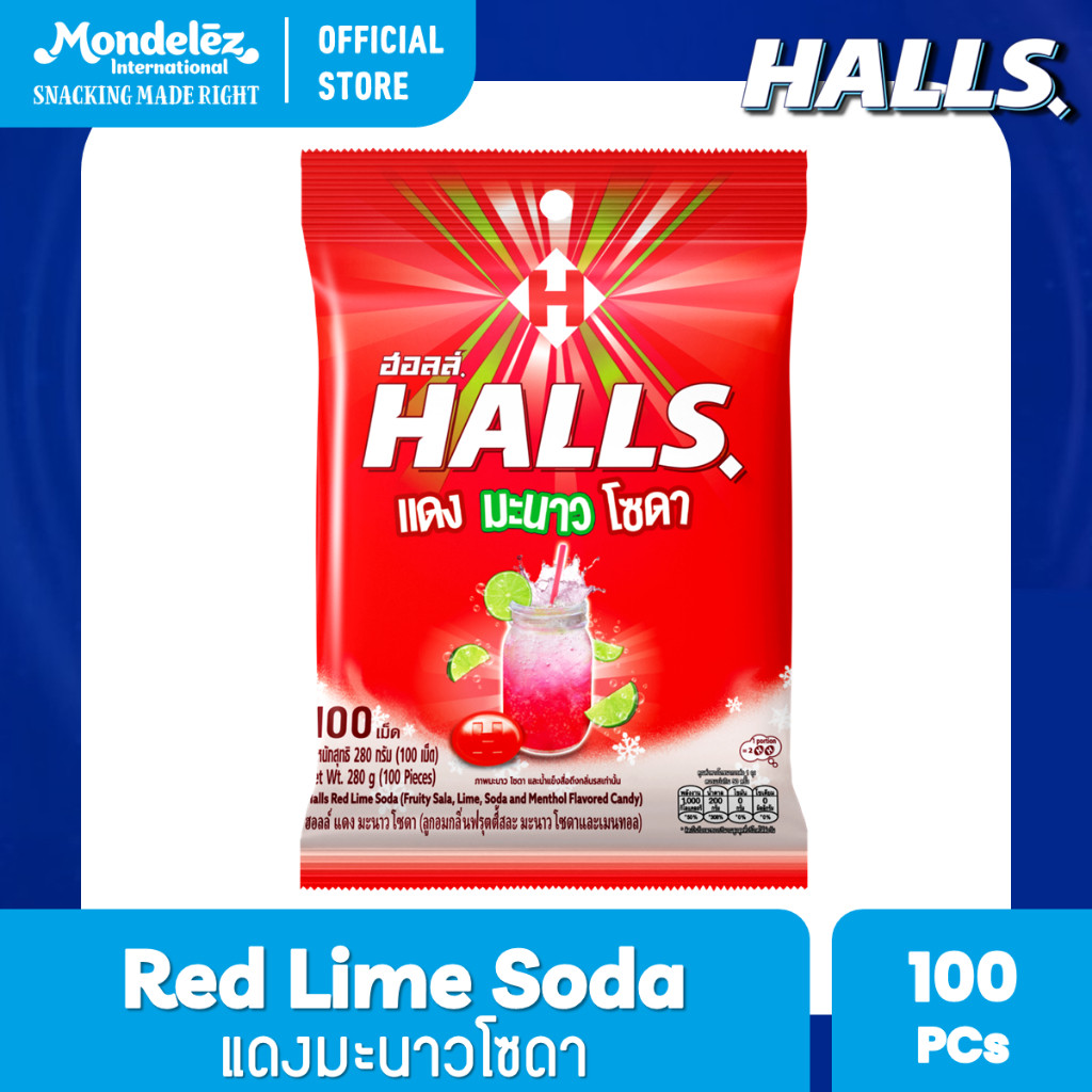 [แพ็ค 3 ถุง] Halls Red Lime Soda ฮอลล์ แดงมะนาวโซดา ลูกอมรสฟรุตตี้สละมะนาวโซดา แบบถุง 100 เม็ด (280g)