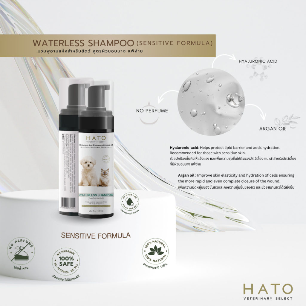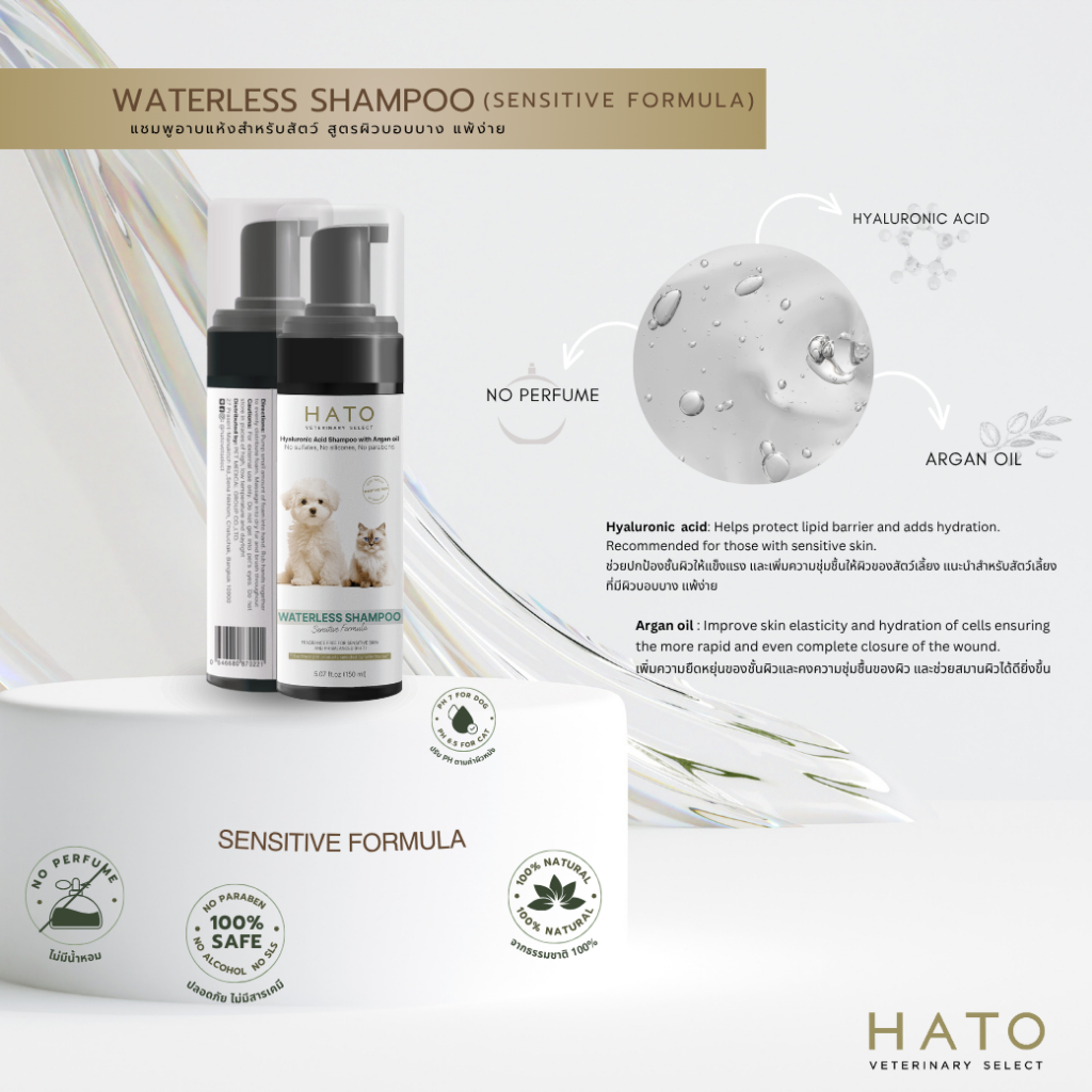 HATO Waterless Foam for Dog / Cat 150 ml แชมพูอาบน้ำแบบไม่ต้องล้างออก ปรับค่า pH ให้เหมาะสมสำหรับน้องหมา
