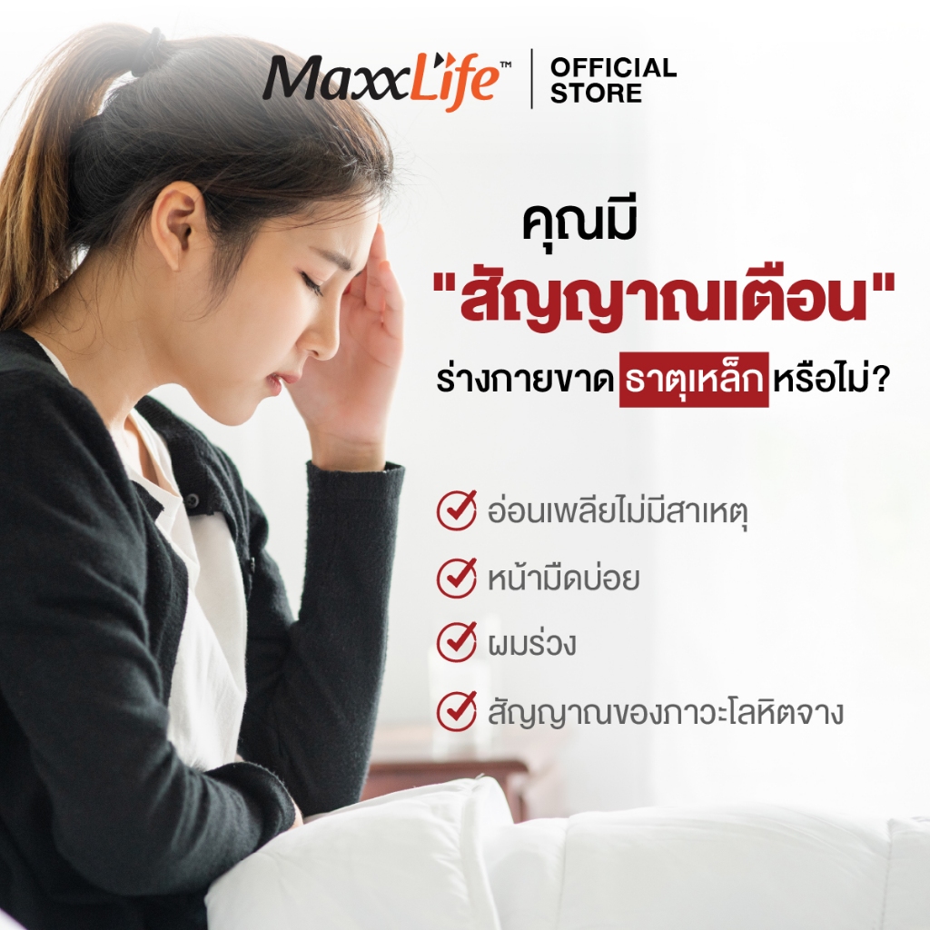 MaxxLife Iron Bisglycinate Chelate เสริมธาตุเหล็ก ช่วยสร้างเม็ดเลือดแดง ป้องกันโลหิตจาง ขนาด 30 cap