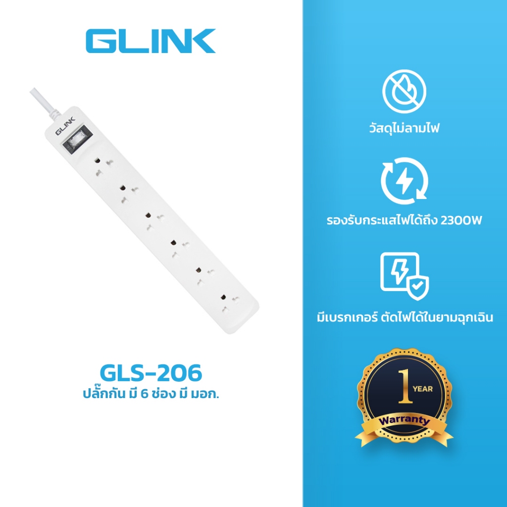 Glink GLS-206 ปลั๊กไฟ มาตราฐาน มอก. ปลั๊กพ่วง