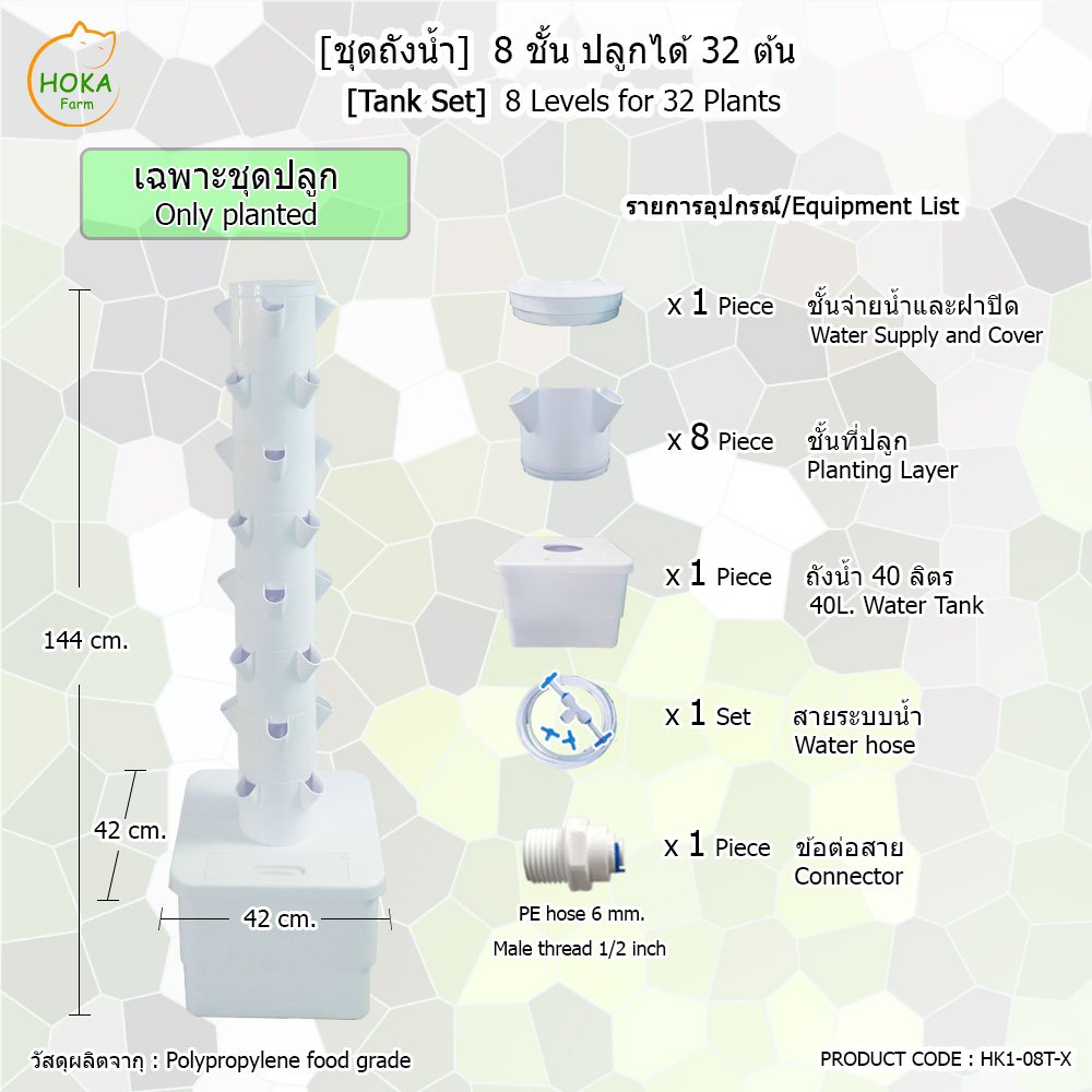 [เฉพาะที่ปลูก+ถังน้ำ ] 8 ชั้น สำหรับปลูก 32 ต้น