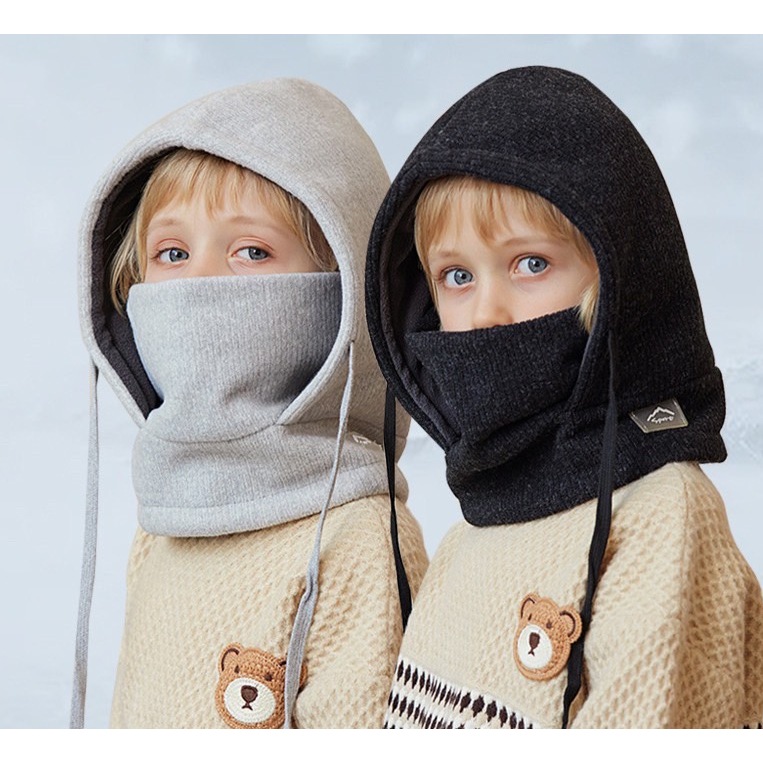 Fleece ski hood / snowboard hood for kids หน้ากากสกีกันลมกันหนาวเด็กรุ่น hoodie 3-10 ขวบ