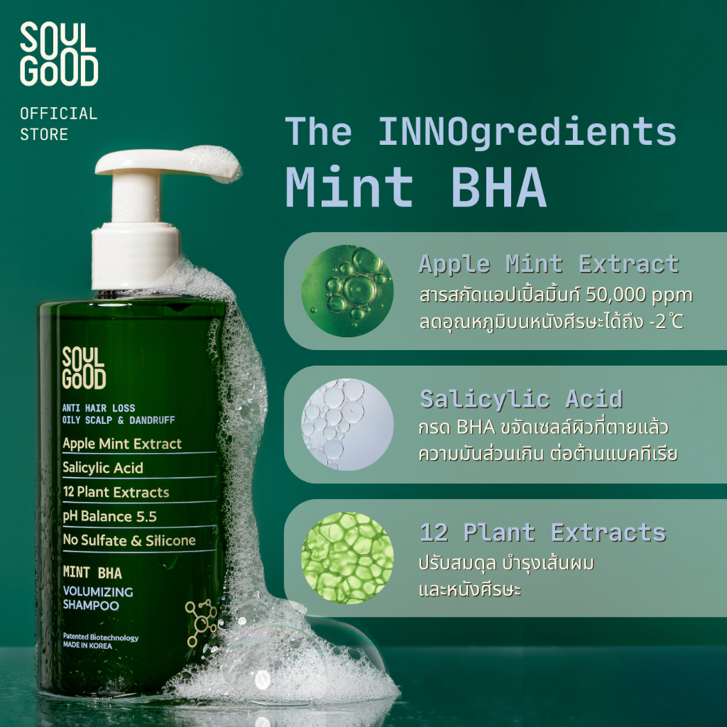 [ลด 16-24 Apr] SoulGood MintBHA Anti Hair Loss Shampoo & Mint Water Treatment แชมพูมิ้นท์และทรีทเม้นท