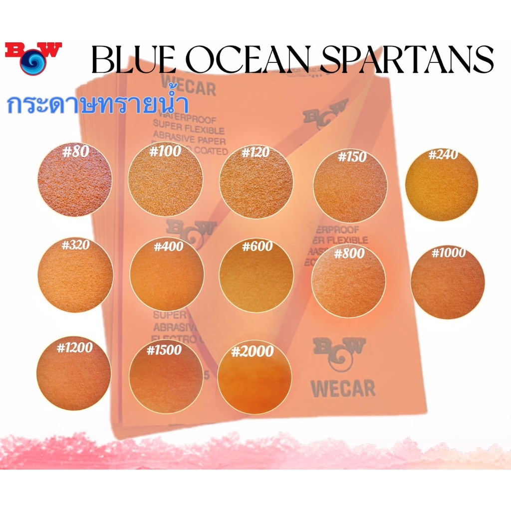 กระดาษทรายน้ำ BLUEOCEAN สีส้ม สำหรับขัดสีรถยนต์ 20 แผ่น