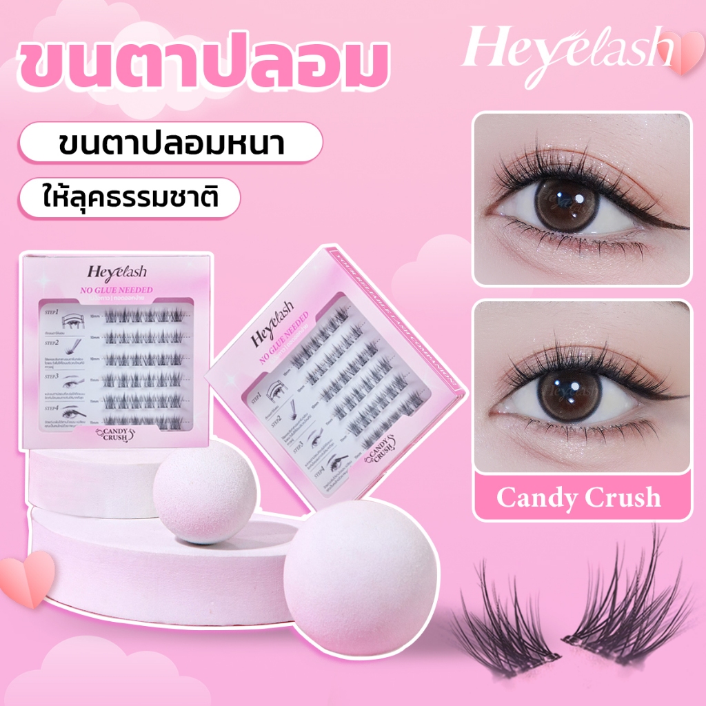 【ส่งด่วนจาก กทม.】HeyeLash #Candy Crush ขนตามีกาวในตัวรุ่นธรรมชาติที่สุด 10-11มม. เพิ่มวอลลุ่มให้ขนตา