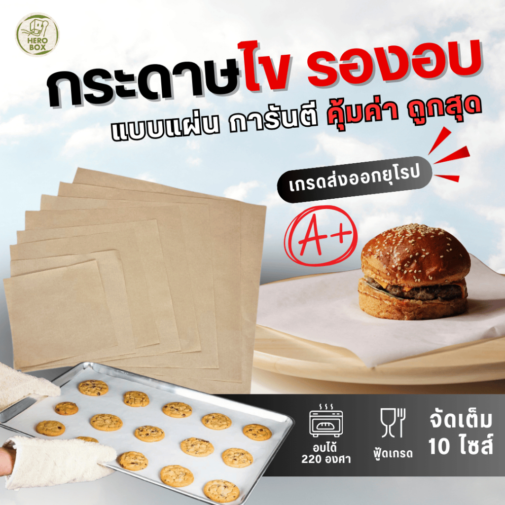 【HeroBox】กระดาษรองอาหาร 100ใบ ถูกสุด โรงงานมาเอง กระดาษรองอบขนม bakingpaper อบ เบเกอรี่ กระดาษไข