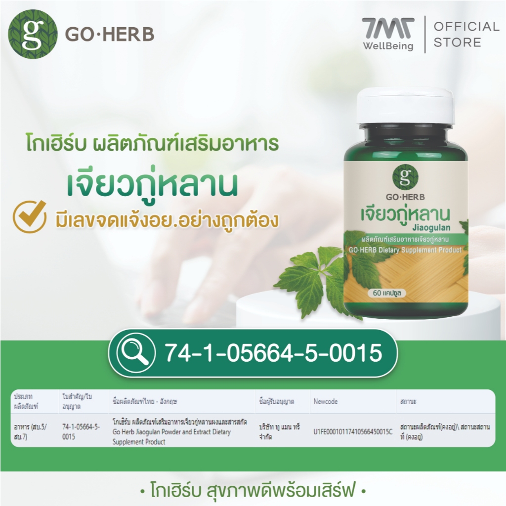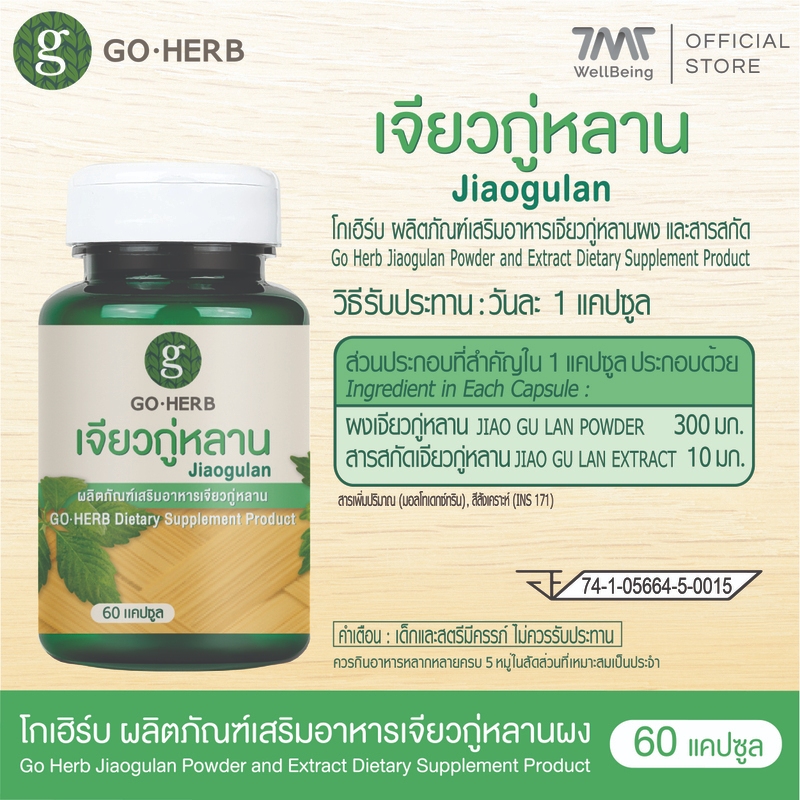 โกเฮิร์บ ผลิตภัณฑ์เสริมอาหาร เจียวกู่หลาน 60แคปซูล ควบคุมระดับน้ำตาลในเลือด ลดการอักเสบของข้อ หน้ามืด เวียนหัว