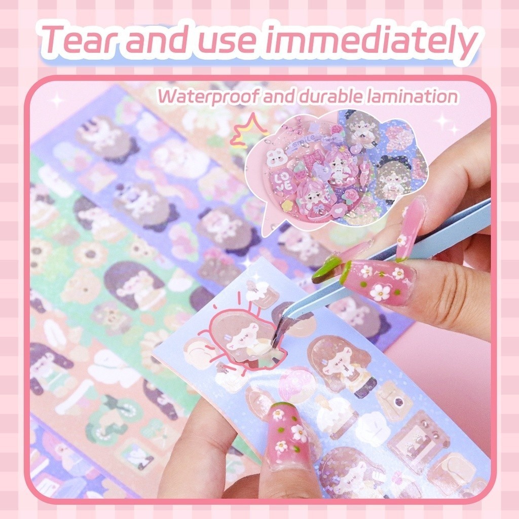 ชุดสติกเกอร์น่ารัก ฟรีแหนบ สติกเกอร์เลเซอร์ ลายการ์ตูนน่ารัก สําหรับเด็ก DIY เครื่องเขียนตกแต่ง