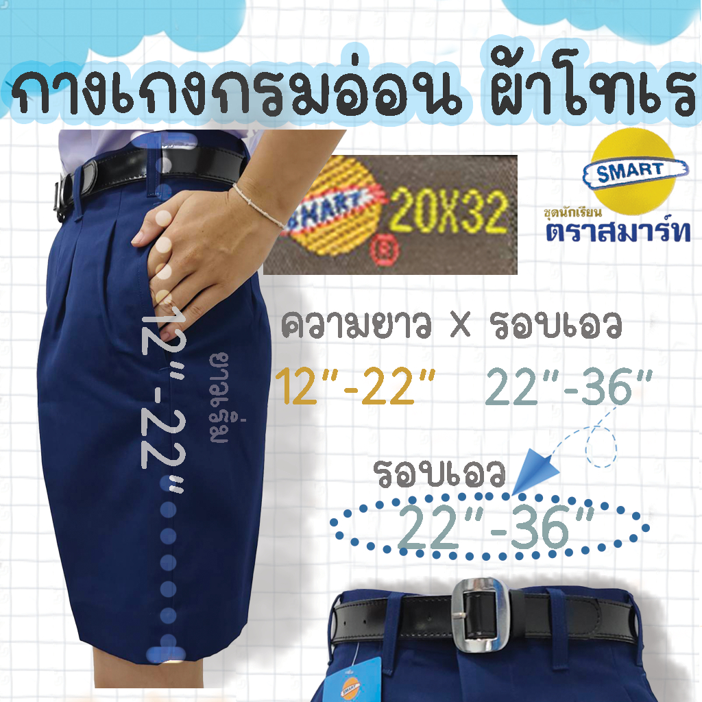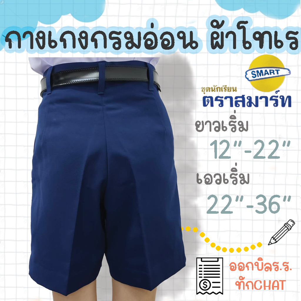 กางเกงนักเรียนชาย สีกรมอ่อน ผ้าโทเร ตราสมาร์ท SMART ยาว 12-22 นิ้ว เอว 22-36 นิ้ว
